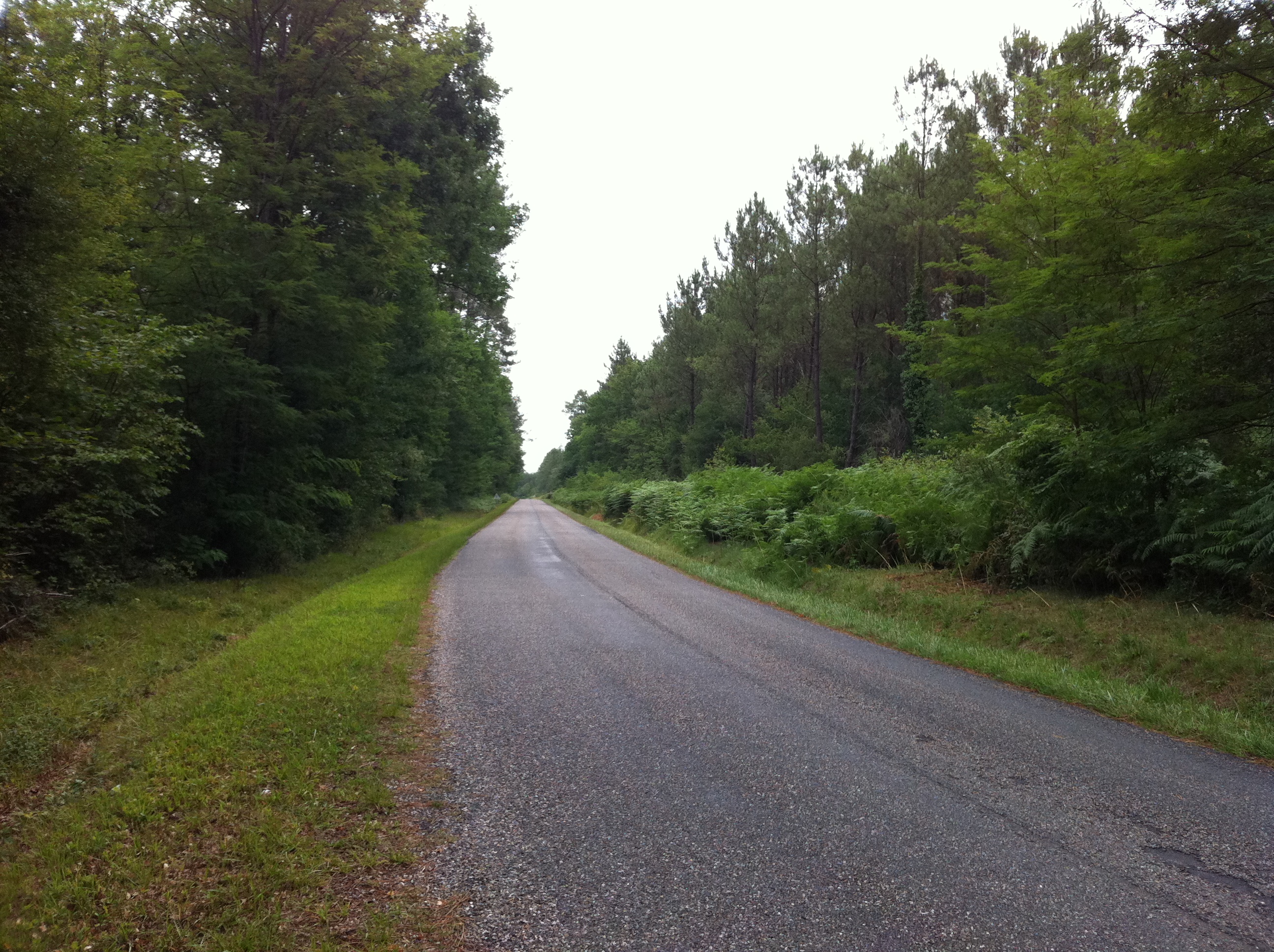 Avant Roquetaillade, nous avons fait un tour du côté de Lucmau où le meilleur « vieil » ami de Fred a une maison de famille. Alors nous sommes tombés sur un village mignon à mort, avec une église surprenante, au bout d’une route – à l’aube de la Forêt régionale des Landes – longue, plate et droite. Et si on allait y courir ?