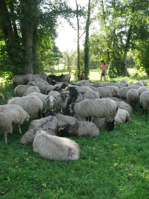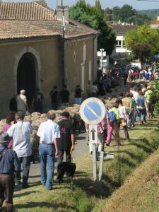 Tandis que j’effectuais une recension des similitudes entre le 20e arrondissement de Paris et Brooklyn, Fred et les enfants ont assisté à l’arrivée de la Transhumance des moutons à Aillas, à une vingtaine de minutes de chez nous.