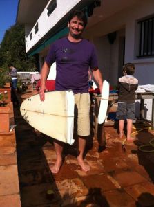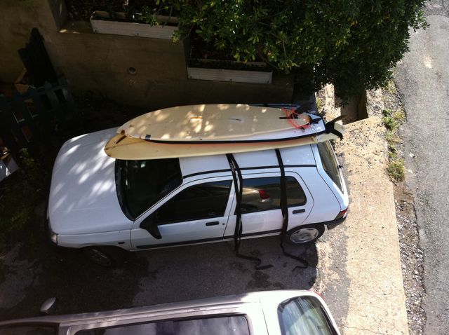 la taille des vagues n’était pas juste une vue de l’esprit. M. a voulu passé sous l’une d’entre elles s’apparentant plus à un mur d’eau qu’autre chose. Trop tard, la planche a cassé net!