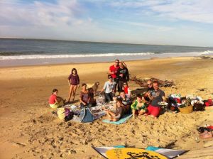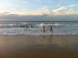 Tandis que plusieurs évoquent l’Apocalyse – un alignement des chiffres inhabituel – nous sommes allés à la plage. Chacun ses priorités. Les hommes Bernossiens s’y sont rendus à vélo (80 km à l’aube, tout de même), nous, les épouses et autres rejetons, les avons rejoint avec le pique-nique, les bouteilles de rouge et le sourire.