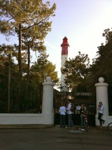 Puis, nous avons enfourché nos vélos. Deux familles, petits et grands cyclistes sur la piste vers le Ferret. Manque de chance, mes pneus, que Fred avait eu tellement de mal à changer le matin même par des tout neufs achetés la veille au magasin, se sont déchirés – ça se peut ça aussi – moins de trois kilomètres après le départ. Chéri qui s’était cogné 80 km hier, a gentiment accepté de troquer son propre deux roues de course, pour rapporter le mien à la voiture et nous rejoindre au phare.