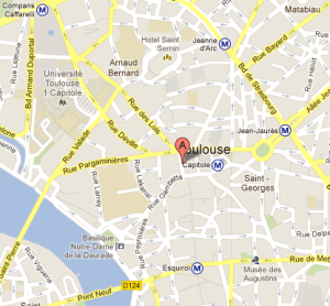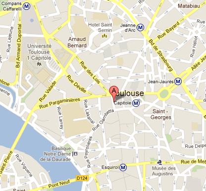 Par le Pont Saint Pierre, nous nous sommes dirigés vers la Place du Capitole, seul et unique point de repère que nous ayons.