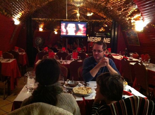 Gavés d’images et d’impressions qui nous happent, nous achevons notre course dans un restaurant indien*** surréaliste. Au fond d’une cave, un père, sa fille… et un écran géant qui dégouline du Bollywood. C’est génial, les enfants sont rivés sur la télé, et nous dégustons tranquille des currys et autres dhals qui nous réveillent nos papilles assoupies.