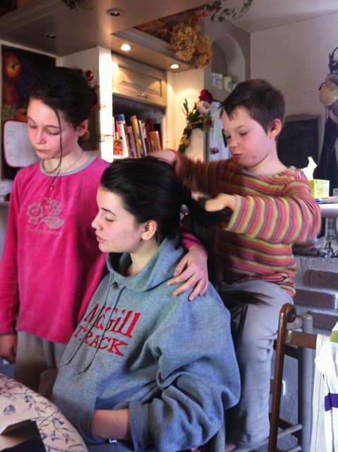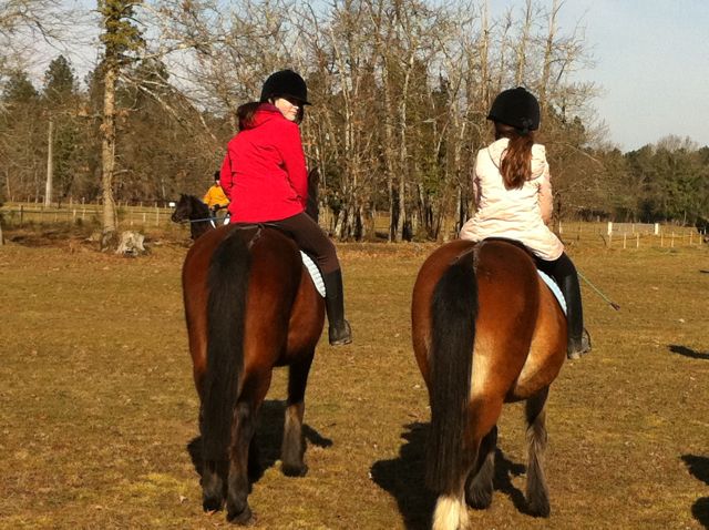 pour l’anniversaire de sa soeur, Miss a cassé sa tirelire et lui a offert une reprise d’équitation. Ju n’était pas montée depuis 6 ans, elle s’en est tirée avec le sourire, du plaisir, et mal au fesses!