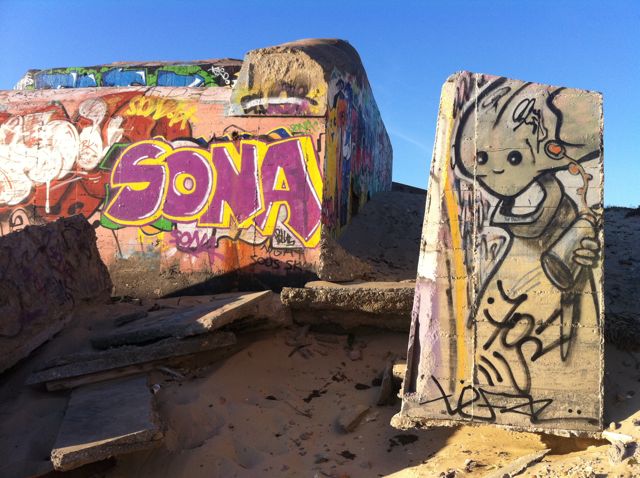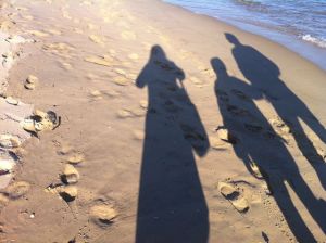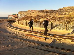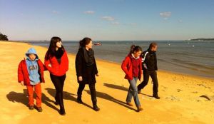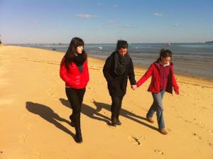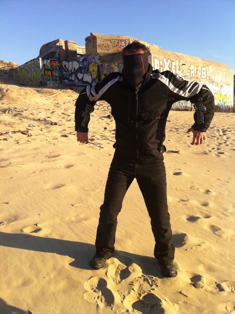 à moto, Ju et Fred, suivent le reste de la troupe vers le Cap Ferret. Soleil de printemps et fraîcheur encore hivernale. La plage est presque vide, le restaurant aussi. Trop belle, la vie.
