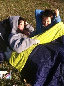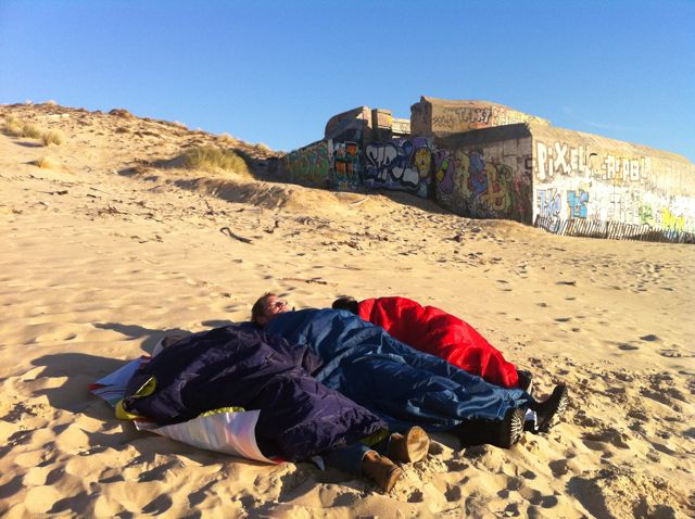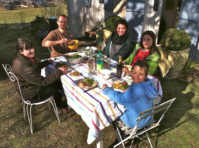 un repas au soleil le 18 février, ça ne se refuse pas. La sieste en plein air, non plus. Les sacs de couchage sont quand même bien appréciés.