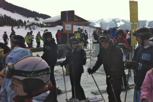 Dans les files d’attente, les différences sont encore flagrantes. Les Français s’entassent en moton et cherchent à passer devant les autres. Moi la première : tant qu’à être petite, autant que ça serve à quelque chose. On est à mille lieux de la rangée rigoureuse de Bromont ! Quoique, je comprends, au prix que coûtent les séjours dans les Alpes, les gens veulent profiter de chaque minute. Jugez plutôt, un forfait famille 2 adultes 2 enfants d’une semaine se détaille autour de 640 euros (850$). Certes, on peut skier de 9h à 17h sans emprunter deux fois la même piste… Si on ajoute l’hébergement (autour de 1000 euros/semaine), le matériel (environ 100 euros/ pers), le transport (essence et péages) et la bouffe… Le ski alpin a toujours été un sport pour familles aisées, mais c’est devenu indécent.