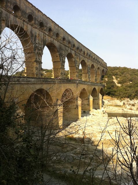 … Nous en avons profité pour faire un tour au Pont du Gard. Cet ouvrage d’art appartient à l’aqueduc romain bâtit en … 50 de notre ère. Au premier siècle donc.