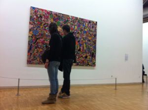 Syndrome « tanka »: tant qu’à être à Beaubourg, autant en profiter pour… visiter les collections permanentes d’art contemporain. Je me suis régalée, mais faute de bancs dans les salles, j’ai rapidement subi pieds et dos qui, rechignant de concert, m’ont rendu la visite assez courte. Décidément, cette forme d’expression m’interpelle, ou pas. Plus que les oeuvres classiques, les pièces d’art moderne peuvent me laisser parfaitement indifférente, ou me happer. Certaines me surprennent, m’amusent, parfois m’agacent, rarement me choquent. Si j’ai pris quelques clichés – autorisés sans flash – de piètre qualité, j’ai oublié de noter (honte, honte, honte, vite quelqu’un pour la flagellation) le noms des artistes et les titres. Enfin une bonne raison pour y retourner.