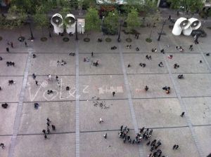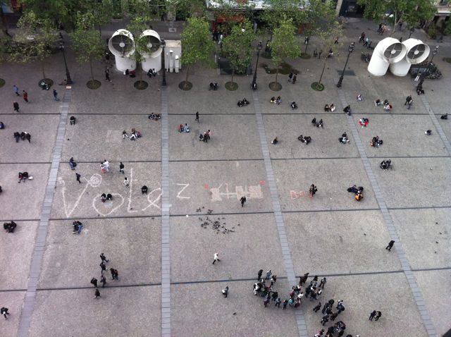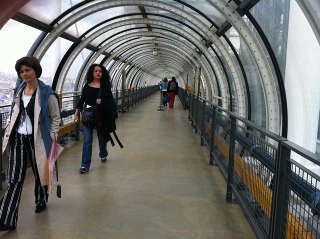 Quand nous étions gamines, mes copines et moi allions réviser nos cours et nos exams à la bibliothèque de Beaubourg. Toujours des beaux gosses d’histoire de l’art en champs de mire ! Aujourd’hui, la file pour l’entrée commence en matinée. Tellement tôt et tellement longue, qu’on se demande où elle aboutit. Quelque part, je me souviens aussi de la naissance du centre Pompidou. Mes grands-parents et une immense majorité de parisiens criaient au scandale. Moi, j’aime viscéralement cet endroit coincé entre les toits de Paris et les statues de Nicky de Saint-Phalle, entre les putes de St-Denis et les gays du Marais. Les hordes de touristes défilent devant le bâtiments aux lignes inattendues. Nombreux s’installent sur le parvis, proies idéales des vendeurs du temple.
