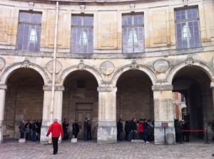 Les Matinales des écuyers. Chaque samedi et dimanche à 11:15, l’entraînement. Pour une somme modique (12 euros pour les adultes) on attend sagement en file avant de pénétrer dans les écuries royales. Le lieu est étonnant. Chaque stalle est fermée d’une porte de bois. Barreaux, lustres, on change d’époque. Une majorité de Lusitaniens blancs, un ou deux Quarter horses, des Criollos argentins. D’un box à l’autre, les animaux se parlent, se reniflent, s’effleurent. Certains tendent la tête et appellent le spectateur toute narine alerte. On se faufile vers le manège extérieur. Quelques chevaux lèvent les pattes en mesure, la longe courte. Le lieu est magnifique. La cour carrée du Louvre, à Versailles. Calme, apaisement. Tout de suite.