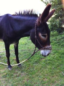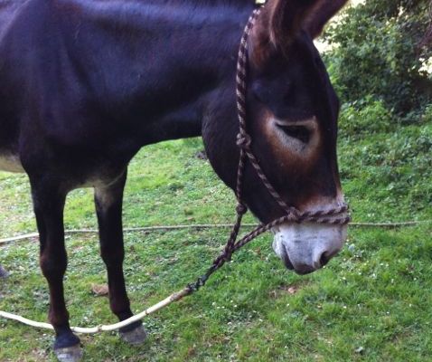 Nous faisons la connaissance de Nais – dite Zaza, notre ânesse d’une douzaine d’années. Croisée âne des Pyrénées et âne du Poitou, elle est haute sur pattes et très résistante. Elle a la croupe étroite et semble avancer sur des talons hauts tant sa démarche est élégante. Coup de foudre instantané.