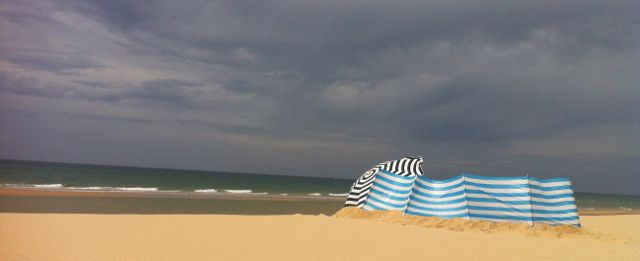 Sur un domaine immense – une magnifique pinède le long de l’océan, propriétaires et locataires sont installés dans des bungalows, des caravanes ou des tentes. Dans l’ensemble, chacun dispose d’un petit terrain arboré. La plupart des maisons n’a pas l’électricité. Les réfrigérateurs et les cuisinières sont au gaz. Certains se dotent de capteurs solaires. J’ai même vu une antenne parabolique ! Il faut que la nuit tombe de plus en plus tôt à partir de septembre, et que certains vivent ici toute l’année.