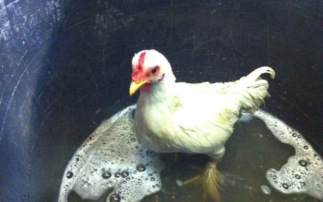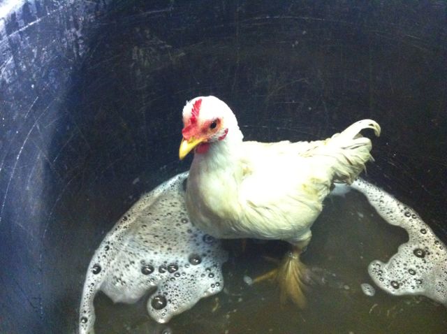 Je ne le savais pas avant hier, une poule se lave. Comme un chien, ou un cochon d’Inde. Il vous suffit pour ça de disposer d’une grande bassine, d’eau tiède, de shampoing et d’un séchoir.