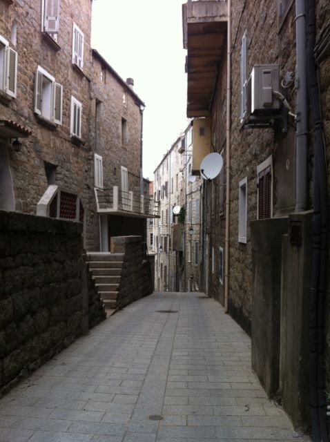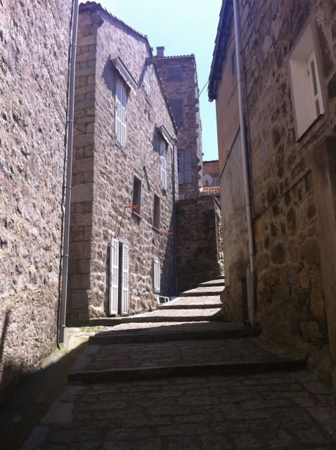 Les rues de Sartène, ville décevante. Peut-être à cause du restaurant, recommandé par les guides, où nous avons attendons 1h30, un repas bien ordinaire ? Peut-être.