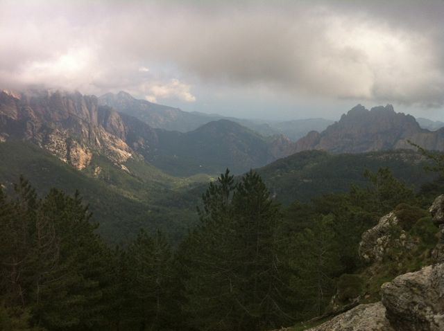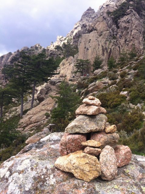 Bavella. J’en entendais parler depuis si longtemps. Le site est exceptionnel, les montagnes plongent en chute libre. Les pins s’élancent vers le ciel… Bon, il y a bien ces hordes de touristes et de motards qui polluent un peu l’environnement (sonore, entre autres). Et ce drôle de petit village de lutins, construit dans l’escarpement. C’était le lieu de villégiature des habitants de Porto Vecchio. Interdiction de louer.