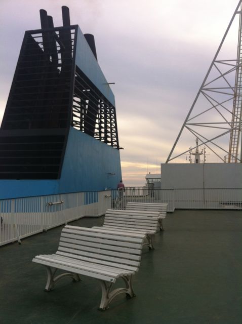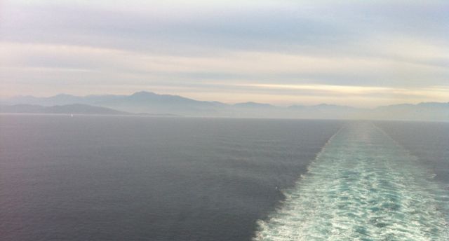 Départ de Propriano. Derniers achats un jeudi d’Ascension. Les boutiques sont fermées. N’empêche, j’ai trouvé le jeu des 7 Familles corses, et un disque de Diana di l’Alba. Nous troquons fromages et charcuterie pour des crudités !