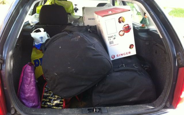 on a un principe dans la famille : ne jamais partir les mains vides. Quand on sort de table par exemple, on apporte au minimum son assiette dans le lave-vaisselle. Fastoche. Alors adapté à notre situation actuelle, on ne part jamais … voiture vide. Hier, on promenait nos bouts de bois, tout à l’heure ce sera un voyage à la déchetterie, et chaque jour, on déménage des cartons à entreposer au fond d’une grotte en attendant la fin du chantier. Pour les vêtements, j’ai plutôt coché l’option future-chambre-d’amis-sans-travaux. Une petite humidité est si vite arrivée !