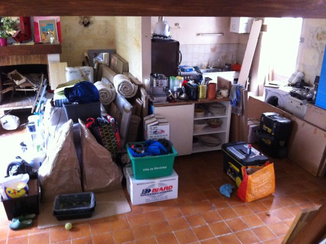 Du coup, je finis le mur de notre chambre, on attaque l’apprêt de la salle de bain et du couloir, puis les deux couches de peinture, et hop : dimanche, on place les meubles dans les pièces. Autre grande partie de Tétris. J’adore ce jeu ! Comment je ne parle pas du reste ? De quel reste on parle ici ? Ah… la cuisine, la cheminée, l’escalier et le palier, l’électricité, les montagnes de cartons qui moisissent dans la grotte… NON, je n’en parle pas. OK ?