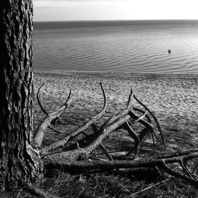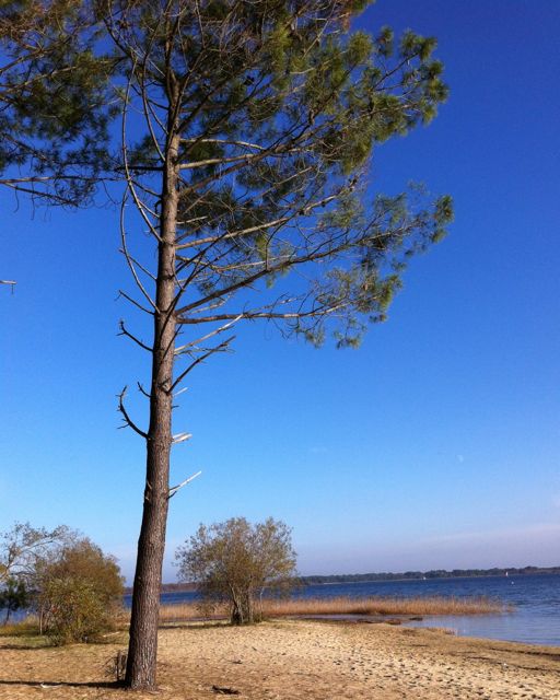 Samedi, j’y étais – j’exagère à peine, quelque part entre le paradis (rien de moins) et l’océan. Le lac d’Hourtin-Carcans, l’un des plus grands de France (18 km nord-sud). Une mini marina qui doit être surpeuplée l’été. En hiver, no soucy. Pas un chat. La misanthrope en moi sourit ! Une plage, une digue, un immeuble, des bateaux petits plutôt. Histoire de pêcheurs.