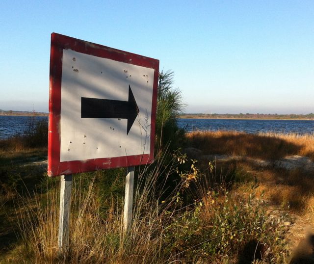Panneau inusité qui conduit le marcheur vers… l’eau ? Mais non, un panneau pour navigateur uniquement !